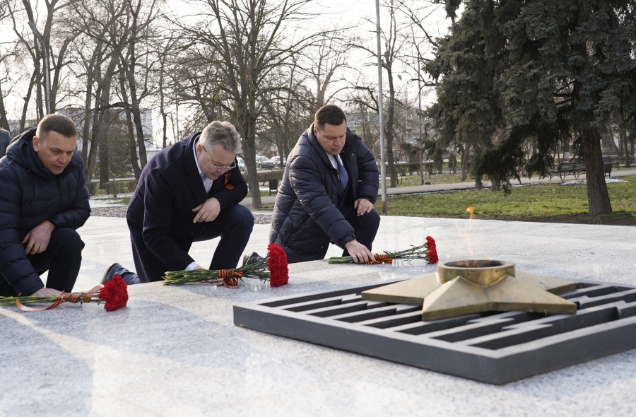 Следующим объектом стал мемориал «Огонь Вечной Славы погибшим в годы гражданской и Великой Отечественной войн» в Зеленокумске. Памятник, являющийся объектом культурного наследия регионального значения, был отреставрирован в рамках реализации федеральной целевой программы «Увековечение памяти погибших при защите Отечества». Работы завершились в октябре прошлого года. Владимир Владимиров возложил цветы к монументу и почтил память погибших. После чего ознакомился с результатами реставрации.