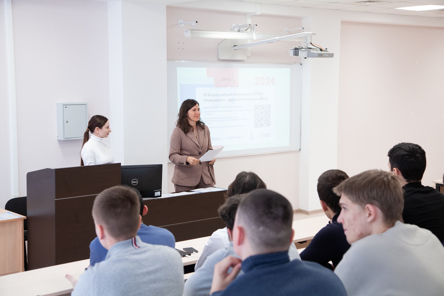 В нем поучаствовали студенты юридического института Северо-Кавказского федерального университета. Мероприятие провели заместитель руководителя УФНС России по Ставропольскому краю Елена Богомолова и помощник руководителя Лариса Репина .