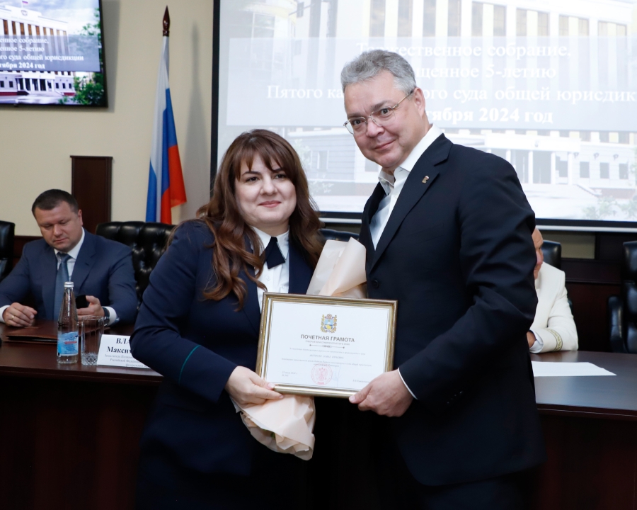 В Пятигорске состоялось торжественное собрание, посвященное пятилетию со дня создания Пятого кассационного суда общей юрисдикции. В мероприятии приняли участие высокопрофильные представители власти, включая Губернатора Ставрополья Владимира Владимирова, заместителя полномочного представителя Президента Российской Федерации в Северо-Кавказском федеральном округе Максима Владимирова, заместителя Генерального прокурора РФ Андрея Кикотя и председателя Пятого кассационного суда Михаила Тарасенко.
