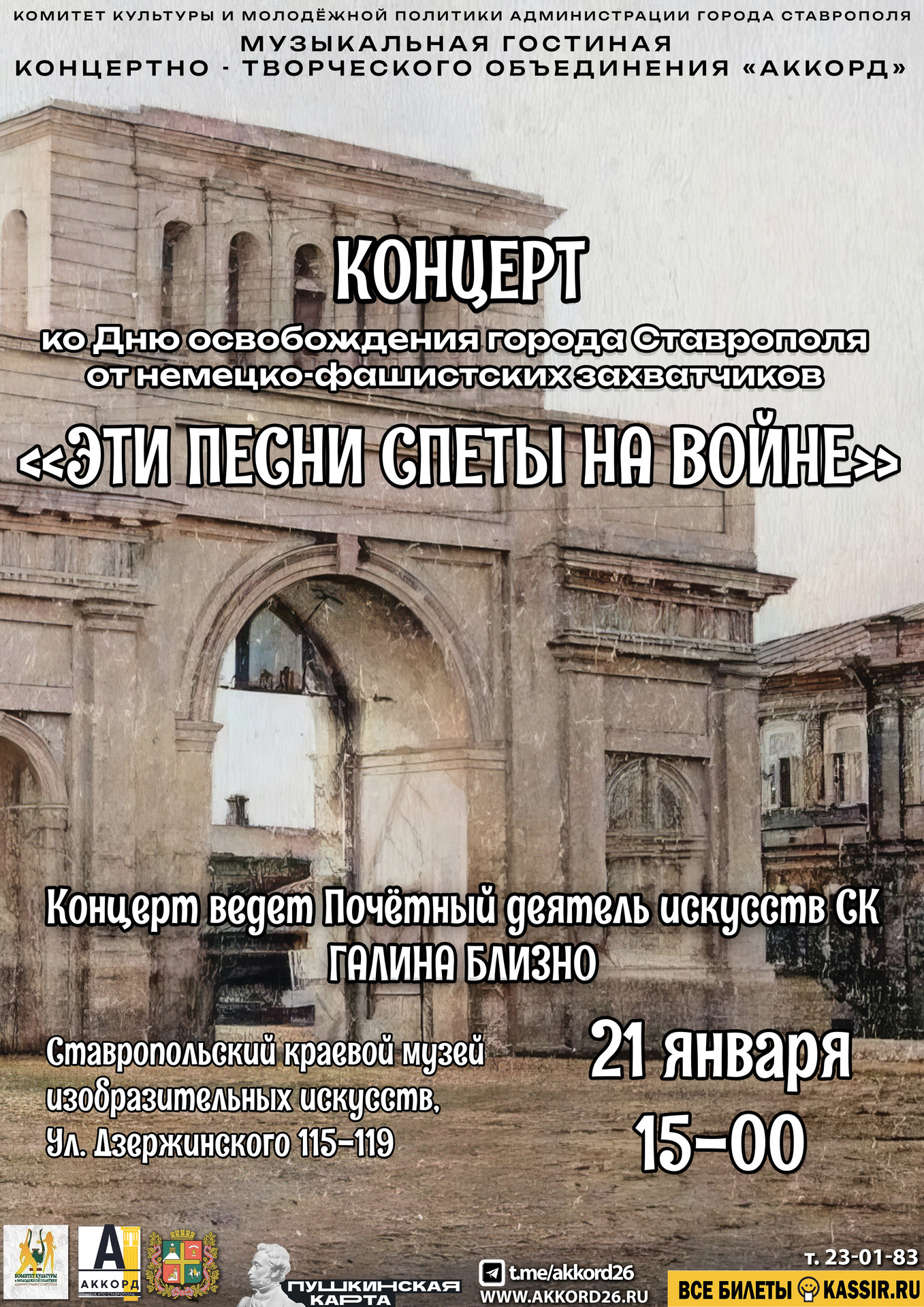 Тел.: 8(8652)23-01-83, МБУК КТО «Аккорд», г. Ставрополь