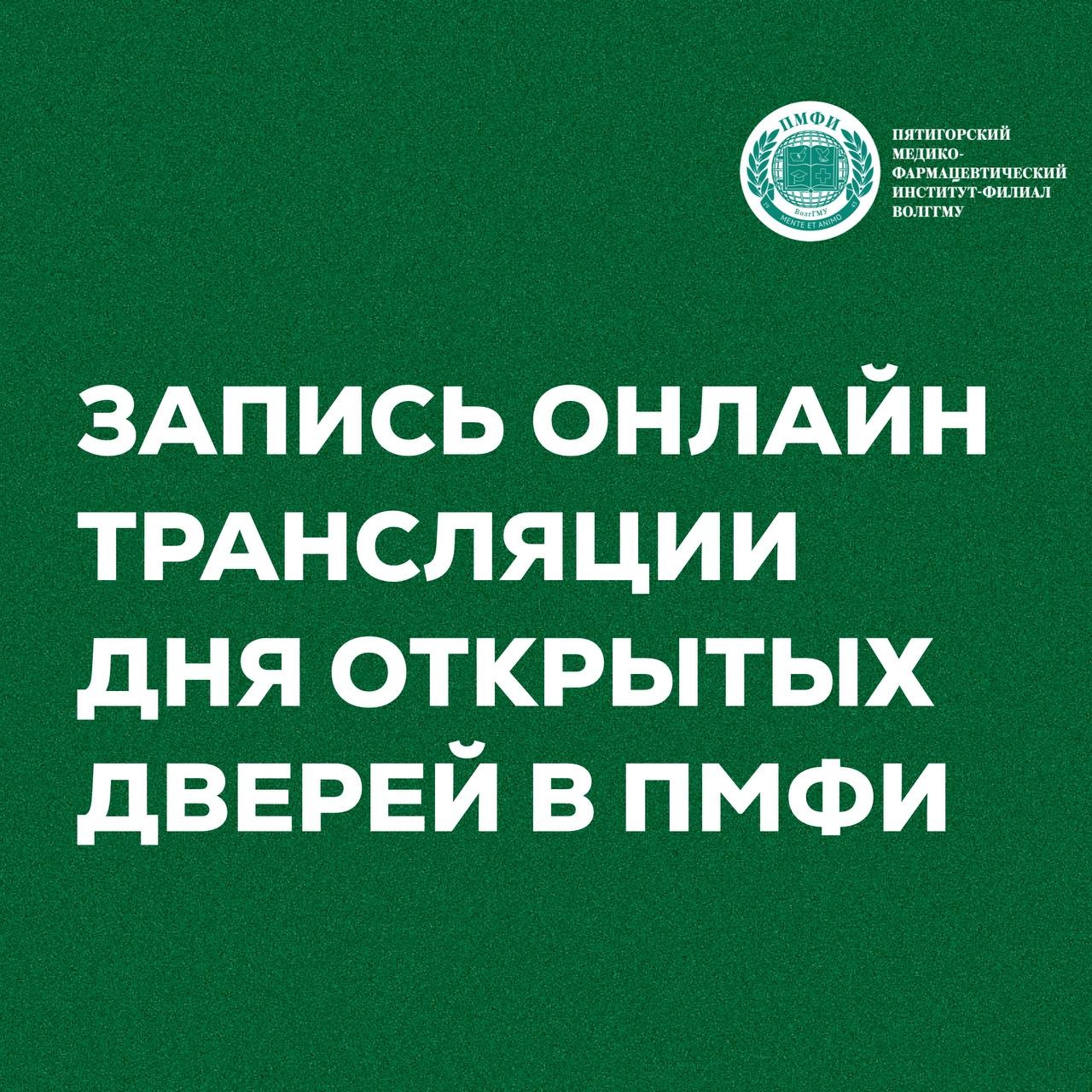 Сегодня в Пятигорском медико-фармацевтическом институте - филиале ВолгГМУ прошёл День открытых дверей в онлайн формате. Предлгаем вам ссылку на запись, где преподаватели вуза рассказывают о программах, существующих в ПМФИ, экзаменах, которые нужно сдавать при поступлении, льготах и многом другом.
