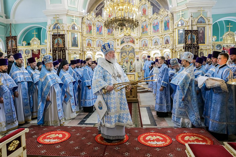 И сегодня мы еще благодарим Царицу Небесную, что в день Владимирской иконы Ее здесь пребывает древняя Казанская икона Божией Матери, один из первых списков Казанской иконы, который чудом был обретен Святейшим Патриархом Кириллом.