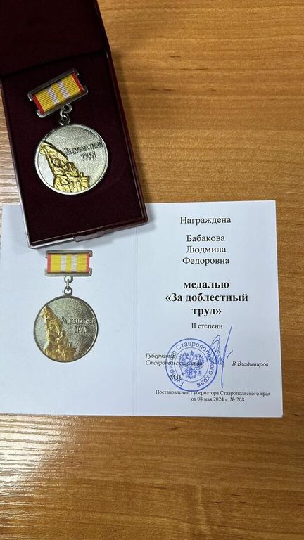 Постановлением Губернатора Ставропольского края Владимира Владимирова Людмила Фёдоровна награждена медалью «За доблестный труд» II степени за многолетний добросовестный труд, профессиональное мастерство и высокие достижения.