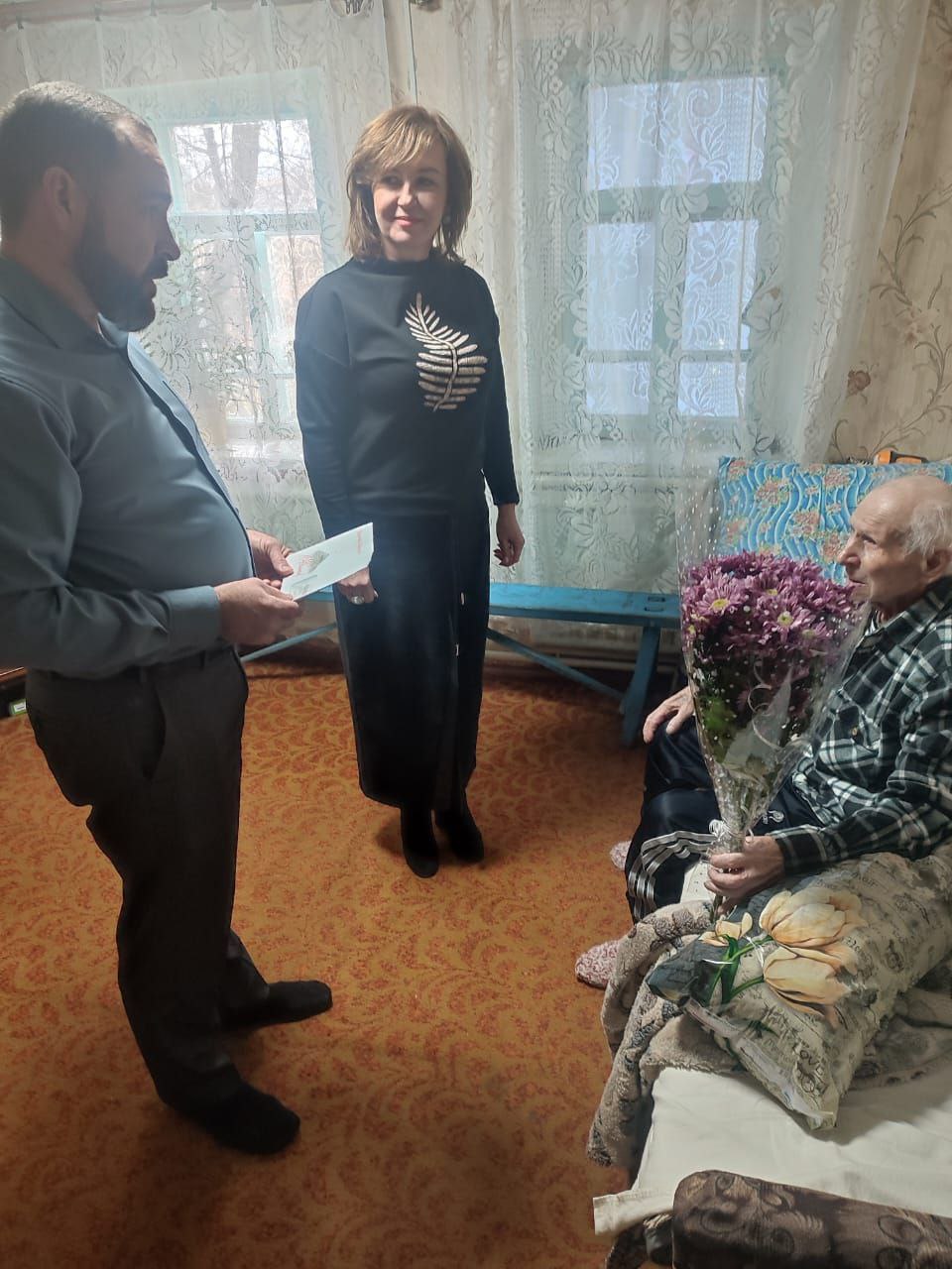 Заместитель главы администрации Кировского муниципального округа Тупиченко Елена Викторовна совместно с начальником Зольского территоириального отдела Голяндиным Алексеем Алексеевичем поздравили с 90-летним юбилеем жител