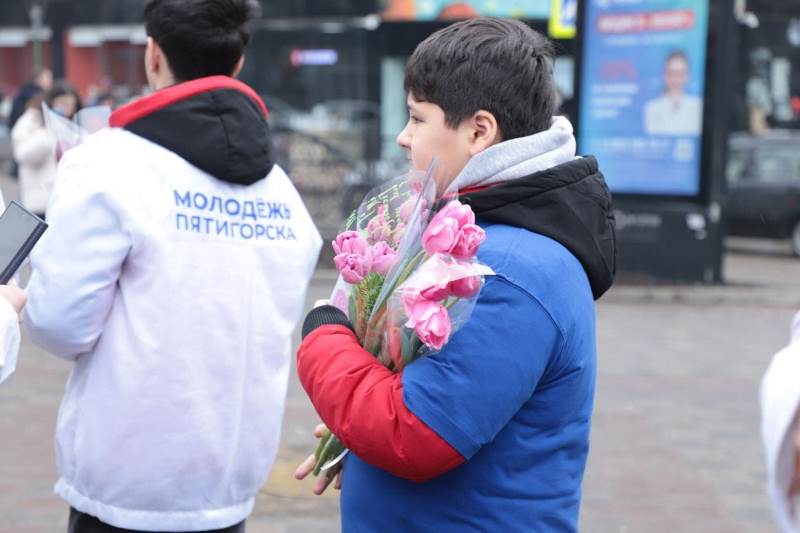 Присоединившиеся к ним на остановке «Проспект им. 40 лет Октября» артисты городских учреждений культуры и волонтеры адресовали прекрасным жительницам и не менее очаровательным гостьям города-курорта много теплых слов, дарили тюльпаны и музыкальные номера.