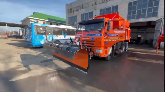 Глава Невинномысска поделился видеообзором новой машины, на котором показано, как выглядит техника, оборудованная для зимнего периода, когда на ней установлен пескоразбрасывающий бункер, а около машины стоит поливомоечное оборудование.